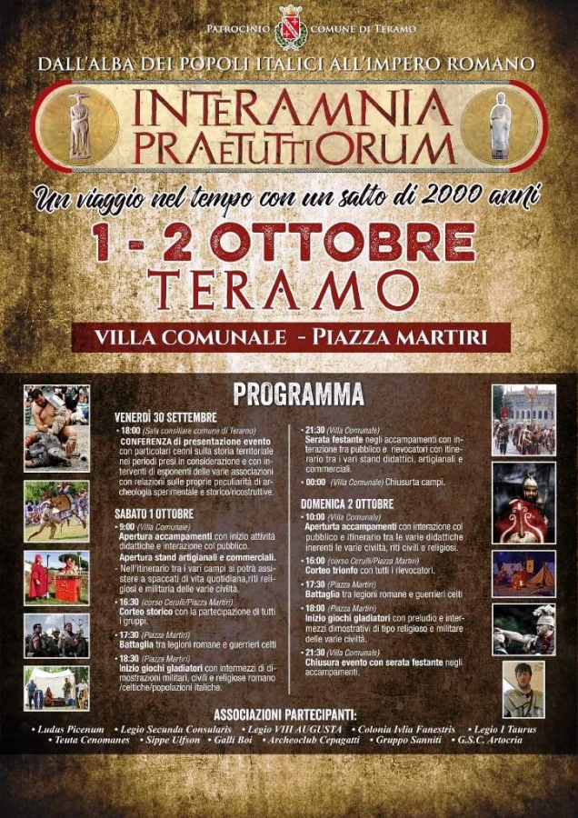 Ore 18:30 (Piazza Martiri) Inizio giochi gladiatori con intermezzi di dimostrazioni militari, civili e religiose romano /celtiche/popolazioni italiche.