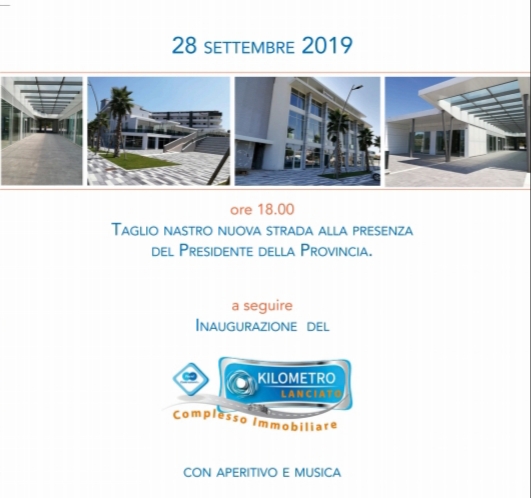 Grande attesa a Cappelle Sul Tavo, per l'inaugurazione del nuovo polo residenziale e commerciale " Kilometro Lanciato", realizzato dall'impresa " Ferri Costruzioni". Il taglio del nastro, della nuova strada che ospita il complesso immobiliare è previsto per le ore 18.00. Presente per l'occasione anche il Presidente della Provincia di Pescara, Antonio Zaffiri, oltre ovviamente al Sindaco di Cappelle, Lorenzo Ferri e tutta l'amministrazione comunale.