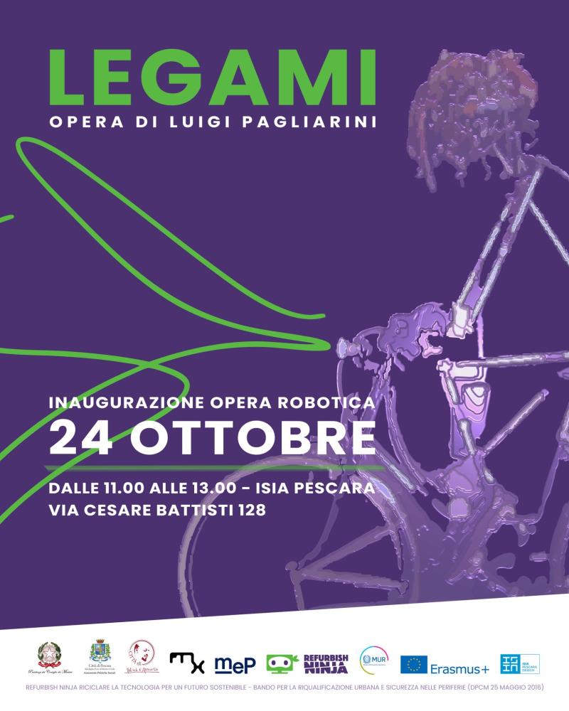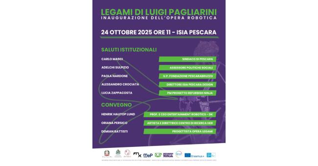 L’evento si inserisce nel progetto “Refurbish Ninja – Riciclare la tecnologia per un futuro sostenibile”, promosso dall’associazione Metro Olografix in collaborazione con Melting Pro, nell’ambito del Bando per la Riqualificazione urbana e la sicurezza nelle periferie (DPCM 25 maggio 2016) del Comune di Pescara e della Presidenza del Consiglio dei Ministri. L’installazione, visibile dall’esterno e collocata in uno spazio pubblico di passaggio, sarà fruibile quotidianamente da cittadini e studenti, trasformando l’ingresso dell’ISIA in un punto d’incontro simbolico tra arte, scienza e sostenibilità.