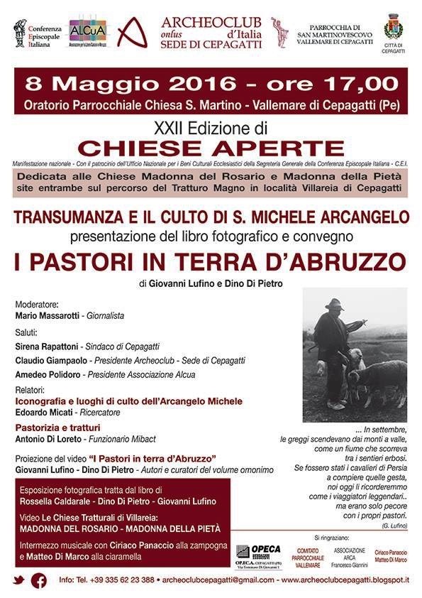 In occasione della XXII edizione di "Chiese aperte" anche il comune di Cepagatti partecipa l'8 maggio alle ore 17 presso l'Oratorio Parrocchiale della Chiesa di San Martino a Vallemare con l'omaggio al culto di San Michele Arcangelo e alla transumanza, infatti sarà presentato il libro fotografico "I pastori in terra d'Abruzzo" di Giovanni Lufino e Dino Di Pietro.