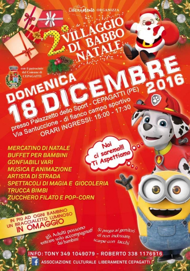 A Cepagatti arriva la seconda edizione del "Villaggio di Babbo Natale", nello specifico presso il Palazzetto dello Sport in via Santuccione.