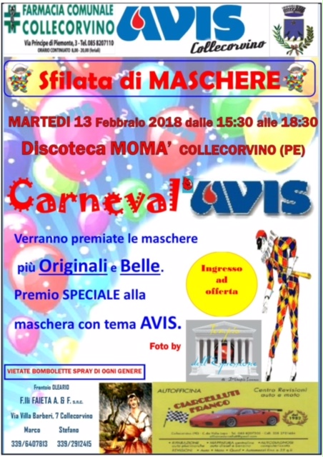 Collecorvino – Torna l’appuntamento con il carnevale a Collecorvino, con un evento organizzato dalla sezione Avis locale.