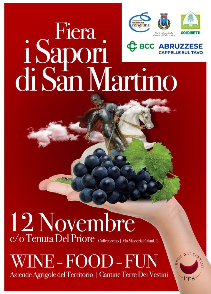 Sesta edizione della fiera “ I Sapori di San Martino”, che quest’anno si svolgerà all’interno della splendida cornice della Tenuta del Priore, a Collecorvino, a cura dell’Associazione Culturale Congiunti.
