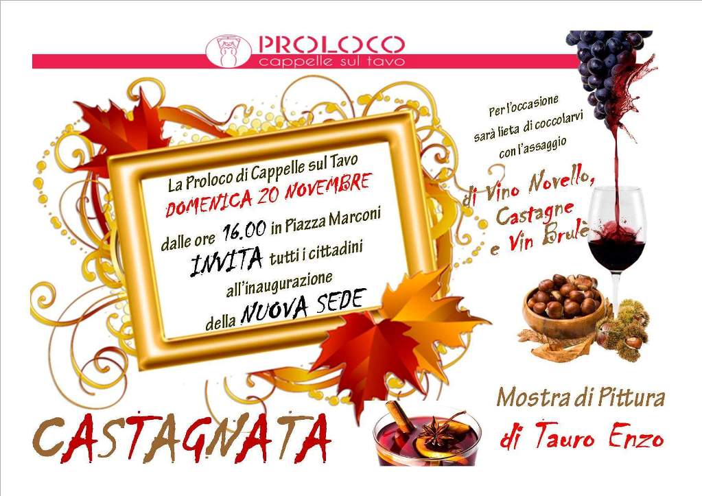 Per l'occasione dalle ore 16:00, sarà lieta di invitare tutta la cittadinanza alla partecipazione e accompagnerà l'evento con Vin Brulè, vino novello e castagne...