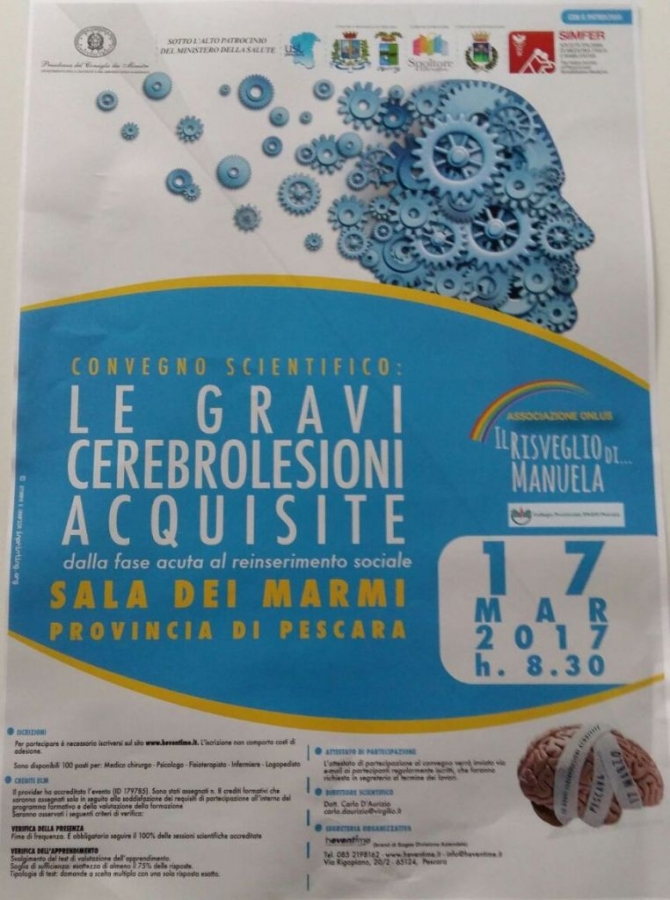 Su questa linea sono già state prese le prime iniziative. La ASL di Pescara ha deliberato e predisposto la concessione di un’ala dell’ospedale di Popoli, destinata a diventare polo della riabilitazione, con 12 posti letto. Il Centro sarà coordinato dal dott. Carlo D’Aurizio, primario della Riabilitazione dello stesso ospedale. Proprio da parte di D’Aurizio è partita l’iniziativa di  formazione scientifica che si terrà venerdì  prossimo, 17 marzo, nella sala Tinozzi della Provincia: un convegno scientifico su “Le  gravi cerebro lesioni acquisite: dalla fase acuta al reinserimento sociale”, che vedrà la partecipazione di specialisti nazionali nel campo della neurochirurgia, della riabilitazione, della rianimazione, della neurologia. Sarà l’occasione per fare il punto sulle nuove frontiere della medicina riabilitativa, anche in vista della imminente istituzione del Centro per il risveglio di Popoli, al quale sono interessati medici, infermieri, fisiatri, fisioterapisti della regione Abruzzo.