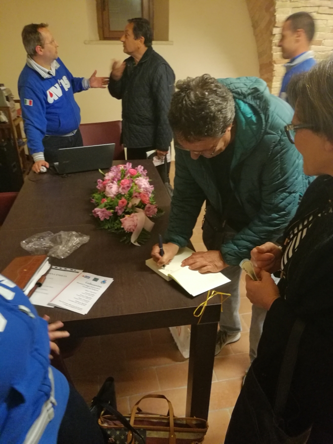 Il sindaco Antonio Zaffiri ha ringraziato l’autore per le parole di ammirazione ed apprezzamento nei confronti di Collecorvino ed in particolare della struttura del Convento e San Paterniano e come tanti altri ha approfittato della disponibilità e bontà di Umberto Braccili, che ha autografato con dedica i libri a tutti i presenti.