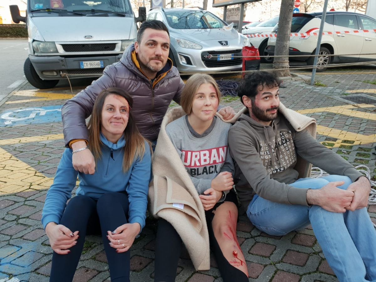 E’ stato simulato un incidente stradale consistente in un investimento su passaggio pedonale di quattro pedoni, la chiamata di soccorso effettuata dai passanti e l'arrivo della prima ambulanza che successivamente richiedeva in appoggio altre due unità, visto il coinvolgimento di numerose persone.