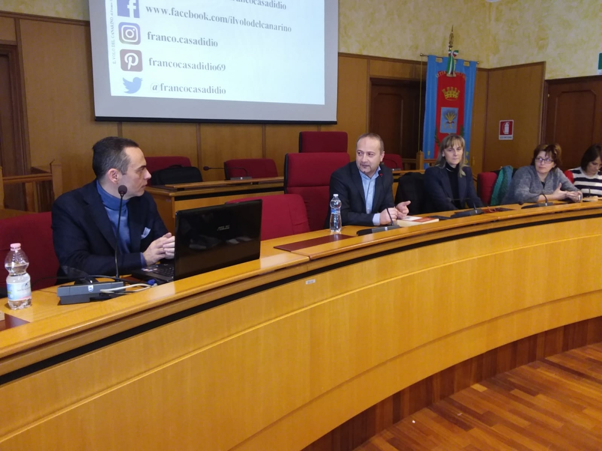 Si avvia a conclusione la Settimana della Memoria, che dal 27 gennaio ha evidenziato a Spoltore la ricorrenza mondiale dedicata alla Shoah. Domani 1 febbraio l'ultimo incontro con lo scrittore Franco Casadidio (alle 9.00 e alle 11.00), che anche oggi ha parlato a un primo gruppo di studenti nella sala consiliare del suo romanzo "Il volo del canarino" (Morphema Editrice): è la storia di due ragazzi (Jürgen e Sara, ebrea) condizionata dalle leggi razziali. Tante le domande per lo scrittore da parte dei ragazzi, impegnati a raccogliere il materiale per l'esercitazione che seguirà la lettura del libro. E' intervenuto per un saluto anche il sindaco Luciano Di Lorito: "abbiamo deciso di appaltare al circolo didattico per i prossimi tre anni, fino a quando sarò io a capo dell'amministrazione, l'organizzazione delle iniziative dedicate alla Memoria. E' stata una settimana perfetta con incontri di grande interesse che hanno distinto Spoltore". Nel programma il concerto con Gianni Golini e Davide Candeloro, le testimonianze di Claudio Fano e Paola Modigliani. La settimana della memoria è a cura delle docenti Angela Ianniccari e Antonella Scordella, con la partecipazione delle docenti di tutte le classi coinvolte, i dirigenti Nicoletta Paolini e Bruno D'Anteo.