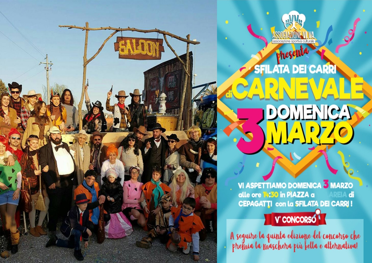 Domenica 3 marzo alle l'Associazione ViVa, col patrocinio del Comune di Cepagatti, organizza la 5^ edizione della sfilata dei carri di Carnevale per le frazioni di Vallemare e Villareia.
