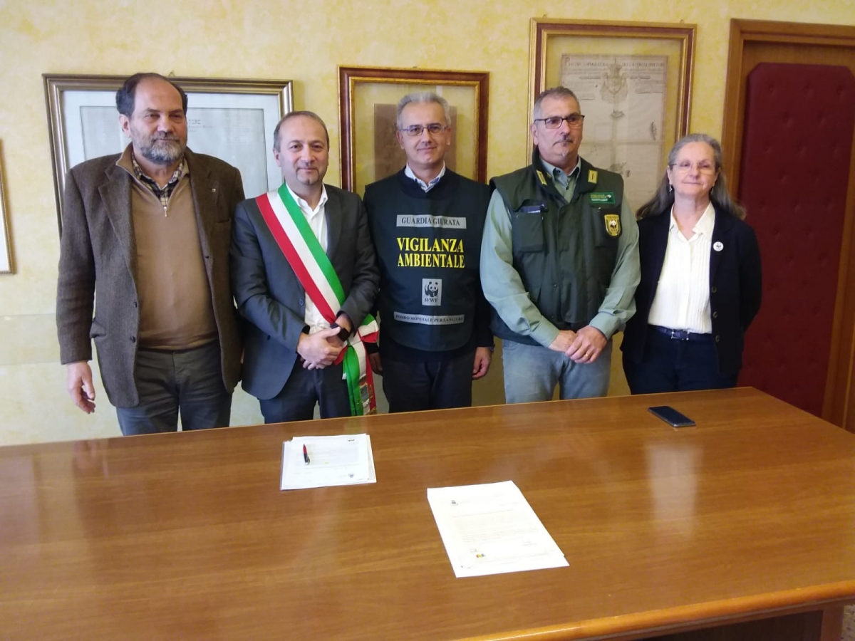 (nella foto da sinistra: il delegato WWF Abruzzo Luciano Di Tizio; il sindaco Luciano Di Lorito; le guardie Saverio Matteo e Vincenzo Caposano; la presidente del WWF Chieti-Pescara Nicoletta Di Francesco).