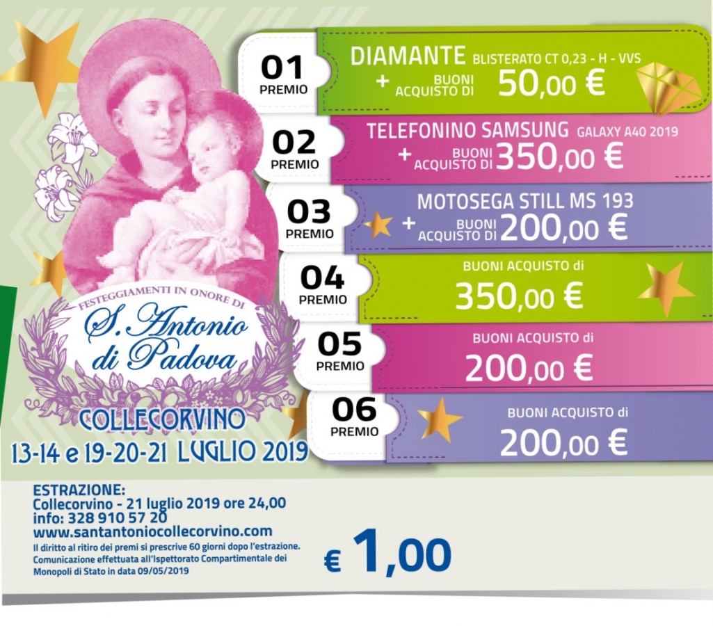 I festeggiamenti si concluderanno con l’assegnazione dei premi della lotteria e con lo spettacolo dei fuochi pirotecnici.