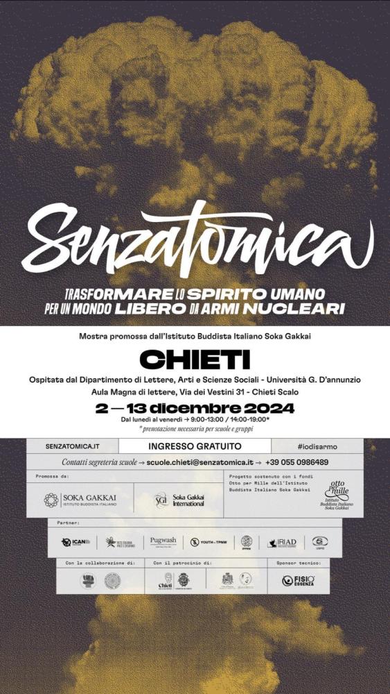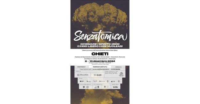 Da lunedì 2 dicembre, all’Università d’Annunzio in via dei Vestini a Chieti, potrà essere visitata la mostra “Senzatomica - Trasformare lo spirito umano per un mondo libero da armi nucleari”.