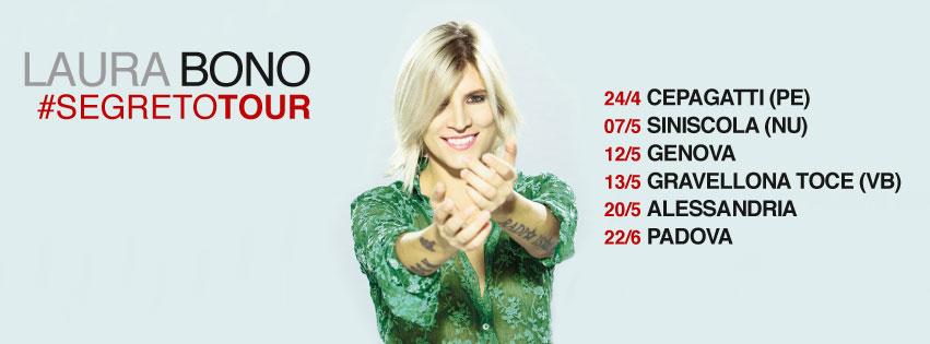 Laura Bono, cantante varesina, classe 1979, una voce graffiante e una grinta da vendere,diventata famosa nel 2005 in seguito alla sua vittoria nella sezione giovani del Festival di Sanremo con la canzone "Non credo nei miracoli", sarà live con "Segreto Tour" in anteprima nazionale presso l'Osteria della Musica di Cepagatti, domenica 24 aprile alle ore 21.