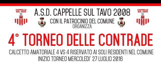 Tutto pronto per il "4° Torneo delle Contrade" organizzato grazie all'A.S.D. Cappelle sul Tavo con il Patrocinio del Comune e la preziosa collaborazione delle tante mamme della Biblioteca Comunale, delle volontarie e dei tanti piccini che si impegnano a rendere speciali gli eventi sul territorio.