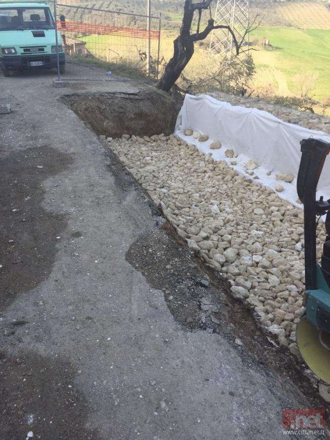 Durante il primo sopralluogo, effettuato il 19 gennaio, e in quelli seguenti, sono intervenuti i tecnici dell’ente per verificare quanto accaduto. L’area a rischio è stata interdetta al pubblico e transennata. Secondo la relazione redatta dai tecnici comunali, "si è riscontrata la possibilità , di realizzare gabbionate a valle; tale condizione permetterà una corretta riprofilatura delle scarpate. Ed è stato deciso di intervenire mediante una prima rimozione del terreno scivolato a valle e subito dopo la posa di gabbioni con pietre e la ricostituzione della massicciata stradale con relativa banchina.