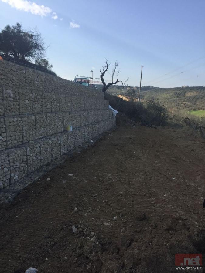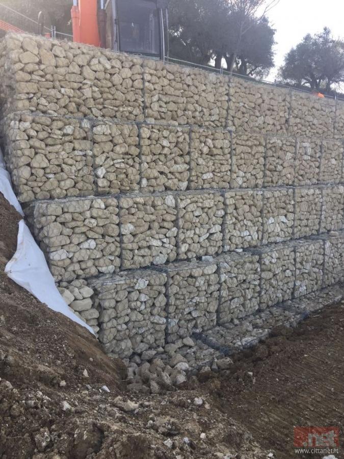 Nello specifico il primo tratto vedrà il posizionamento di gabbioni per una altezza di circa 4,00 metri e larghezza di 3,00 metri, il secondo con gabbioni di 5,00 metri di altezza e 3,00 metri di larghezza circa. In sommità sarà realizzato un cordolo .A consolidamento avvenuto, si procederà al ripristino della sede stradale originaria".