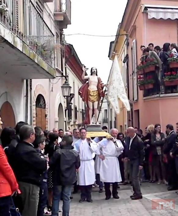 Alle ore 12 spoltoresi e non, si ritroveranno in piazza D'Albenzio per osservare la statua della Maria Maddalena che corre velocemente per dare l'annuncio della Resurrezione di Cristo alla Madre, ma solo al terzo tentativo quest'ultima si avvierà verso il centro della Piazza dove il velo luttuoso cadrà e una musica festosa annuncerà l'incontro con Cristo.